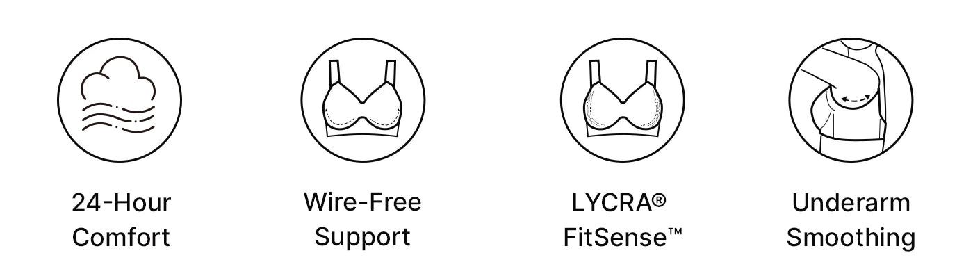 • Seamless bonded tech with stretchy, soft fabric to prevent irritation and discomfort.