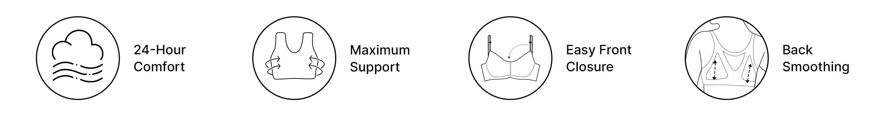 • Full Coverage Cups To Offer Coverage And Support, Back Smoothing, Wide Adjustable Straps, Front Hook And Eye Closure, Invisible Under Cloth, Supportive Underbust Band, Breathable And Quick-Drying Fabric